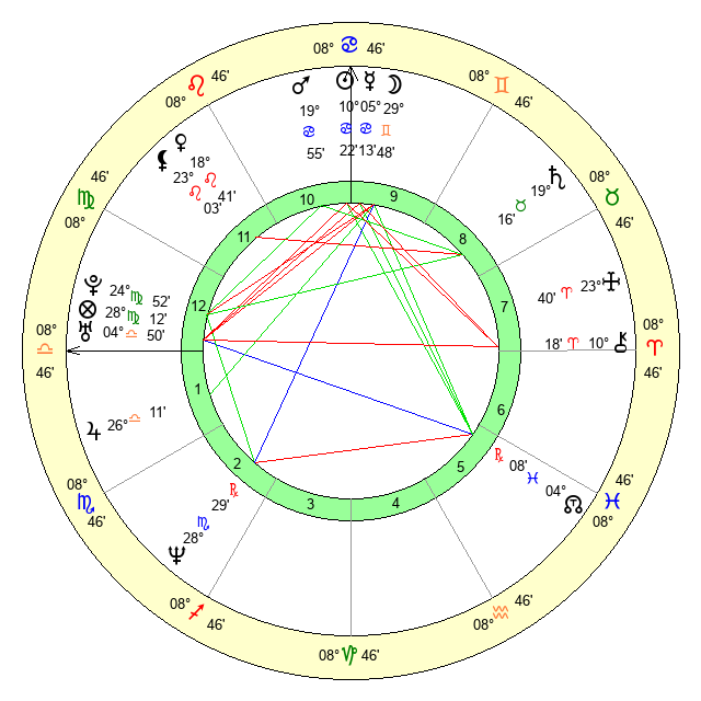 | Sun | 10 Cancer 23 | 11 Cancer 4 | 3 Virgo 2 |