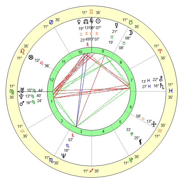 Venus | 19 Gemini 24 | 21 Aries 48 | 2 Virgo 32 |