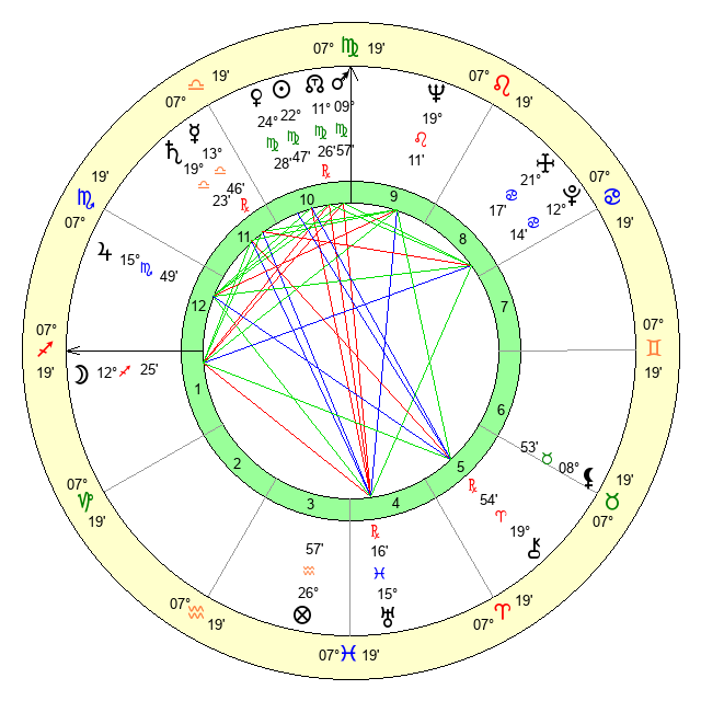 | Saturn | 19 Libra 58 | 28 Pisces 44 | 1 Scorpio 10 |