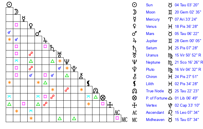 Uranus | 15 Virgo 55 | 25 Taurus 59 | 15 Virgo 57 |