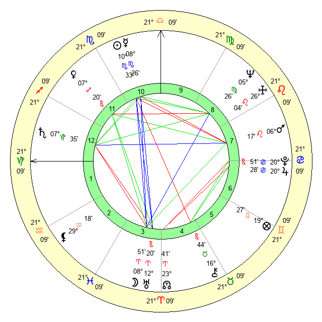 | Neptune | 5 Virgo 27 | 29 Pisces 43 | 4 Virgo 53 |