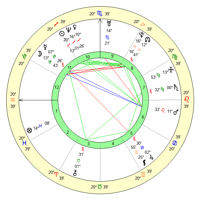 | Saturn | 0 Virgo 56 | 13 Pisces 15 | 29 Leo 1 |