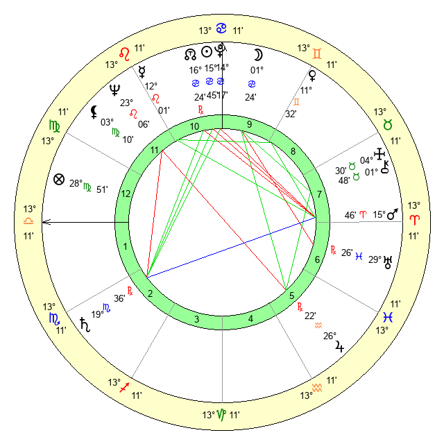 | Jupiter | 26 Aquarius 16 | 6 Cancer 34 | 17 Aquarius 13 |