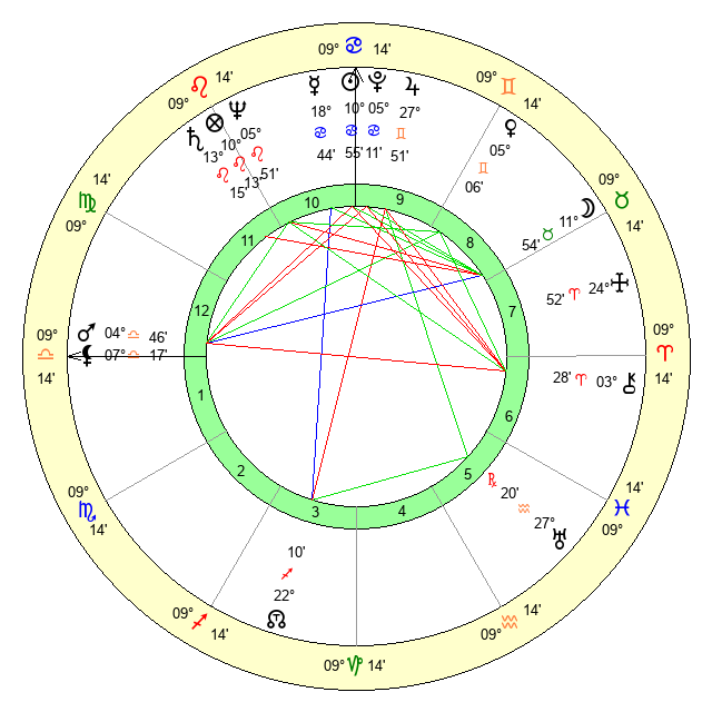 | Sun | 10 Cancer 55 | 12 Cancer 1 | 24 Libra 30 |