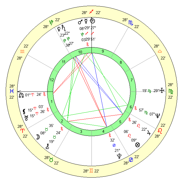 | Neptune | 7 Virgo 58 | 27 Pisces 10 | 5 Virgo 56 |