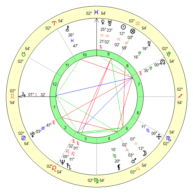 | Moon | 13 Libra 4 | 25 Pisces 0 | 18 Virgo 24 |