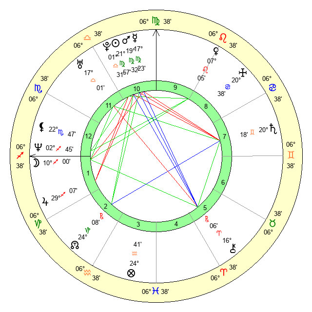 | Sun | 21 Virgo 57 | 22 Virgo 8 | 14 Scorpio 23 |