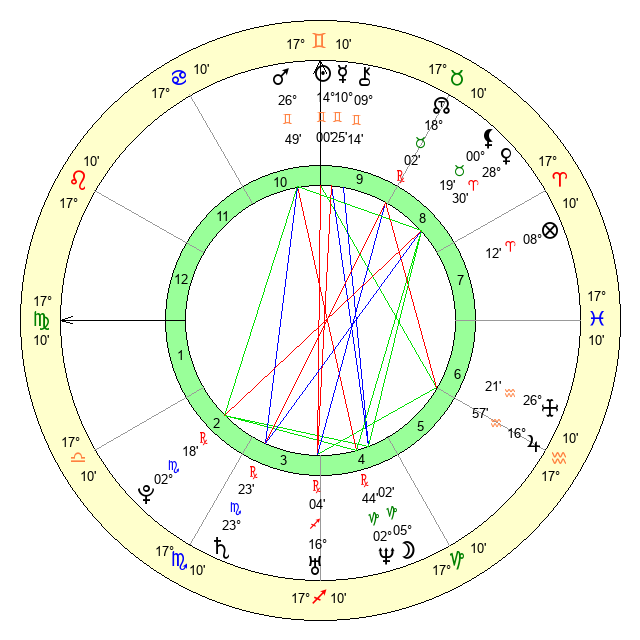 | Mercury | 10 Gemini 27 | 21 Gemini 7 | 18 Leo 43 |