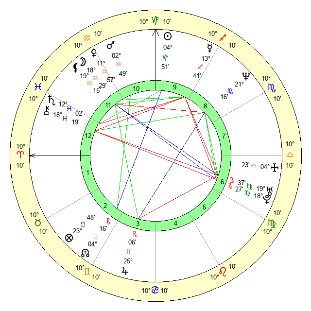 | Pluto | 18 Virgo 28 | 0 Aquarius 54 | 17 Virgo 29 |