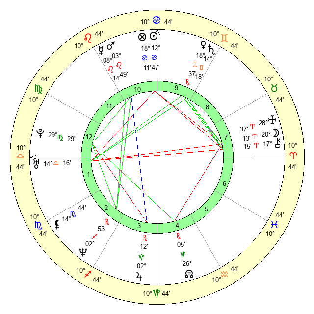 | Sun | 12 Cancer 47 | 12 Cancer 58 | 3 Virgo 32 |