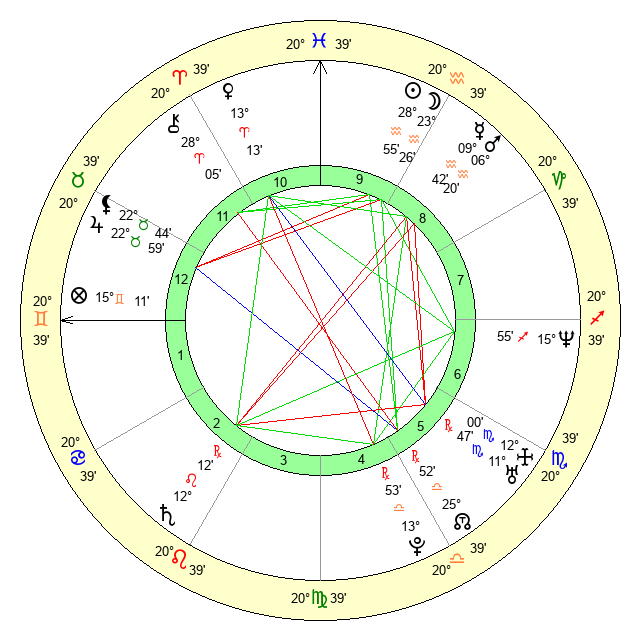 | Jupiter | 22 Taurus 54 | 11 Gemini 34 | 0 Gemini 31 |