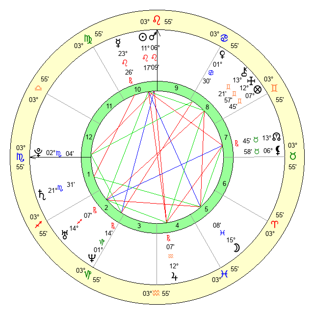 | Mars | 6 Leo 9 | 27 Virgo 58 | 1 Virgo 41 |