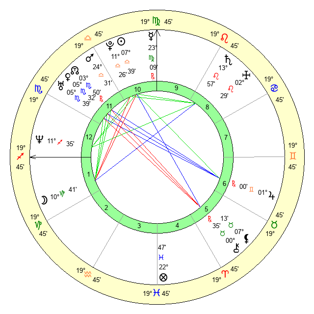 | Mercury | 23 Virgo 9 | 20 Libra 43 | 2 Sagittarius 59 |