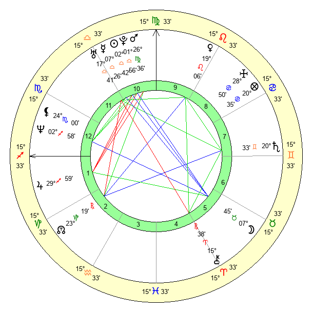 | Mars | 26 Virgo 36 | 2 Scorpio 17 | 1 Scorpio 11 |