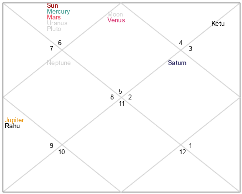 | Venus | 28 Leo 7 | 17 Virgo 24 | 1 Scorpio 25 |