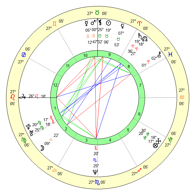 | Moon | 9 Libra 26 | 16 Libra 39 | 12 Scorpio 20 |