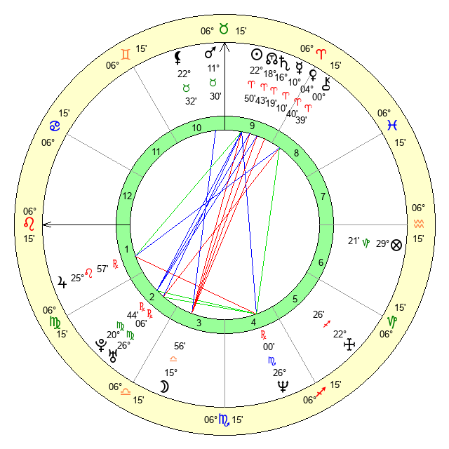| Sun | 22 Aries 50 | 23 Aries 2 | 17 Gemini 56 |