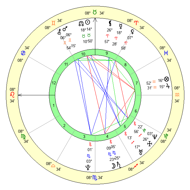 | Moon | 23 Scorpio 11 | 25 Leo 5 | 7 Taurus 45 |