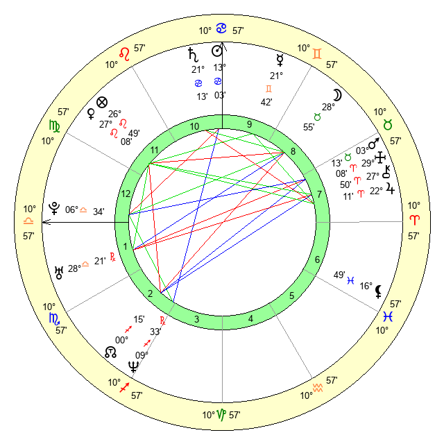 | Sun | 13 Cancer 3 | 13 Cancer 55 | 0 Virgo 54 |