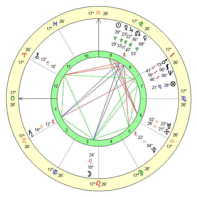 | Moon | 10 Leo 26 | 6 Libra 37 | 2 Cancer 44 |