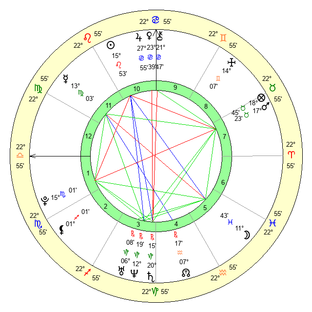 | Venus | 23 Cancer 39 | 9 Cancer 56 | 6 Virgo 38 |