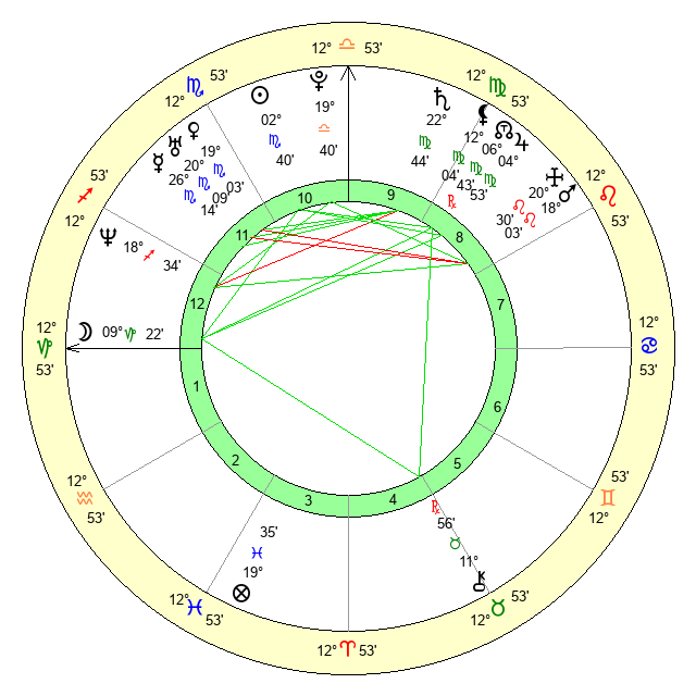 | Saturn | 23 Virgo 6 | 25 Pisces 57 | 26 Virgo 47 |