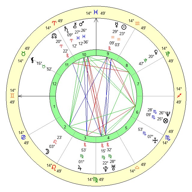 | Sun | 23 Aquarius 3 | 24 Aquarius 14 | 19 Aries 54 |