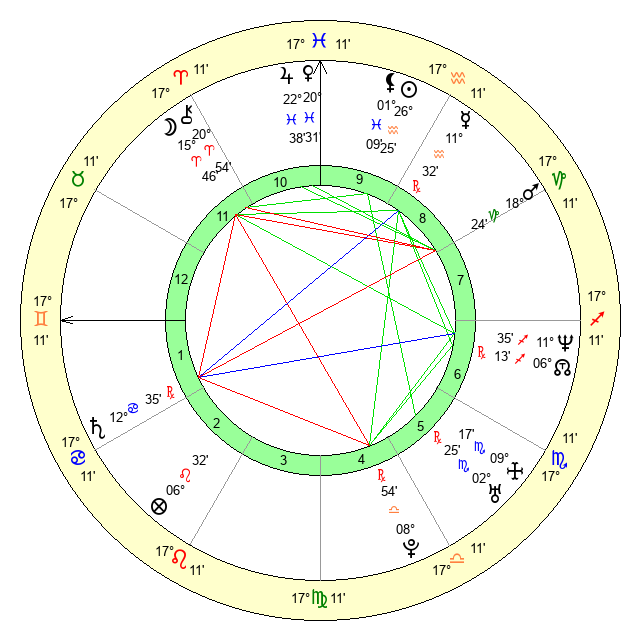| Jupiter | 22 Pisces 31 | 11 Gemini 29 | 4 Aries 29 |