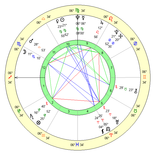 | Moon | 11 Scorpio 6 | 19 Aquarius 43 | 3 Aries 5 |