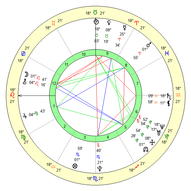 | Mars | 1 Aries 56 | 9 Leo 5 | 26 Aries 51 |