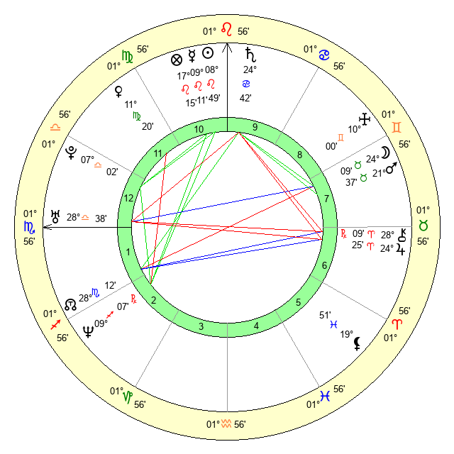 | Venus | 11 Virgo 19 | 1 Cancer 47 | 25 Leo 33 |