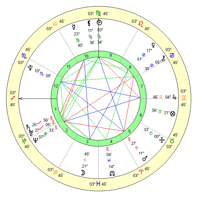 | Mercury | 23 Virgo 41 | 17 Leo 34 | 26 Libra 13 |