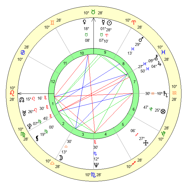 | Sun | 28 Aries 11 | 28 Aries 54 | 28 Gemini 52 |