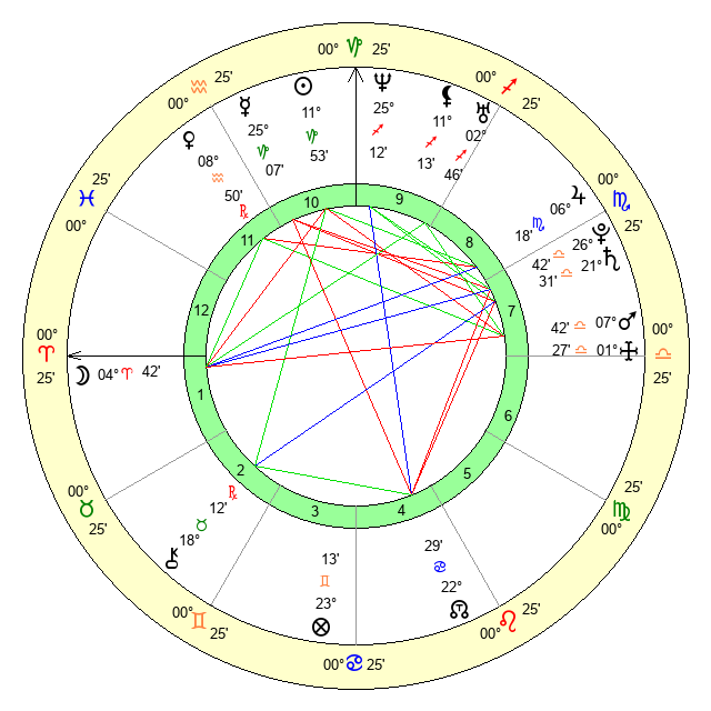 | Moon | 4 Aries 44 | 15 Aquarius 57 | 12 Scorpio 8 |