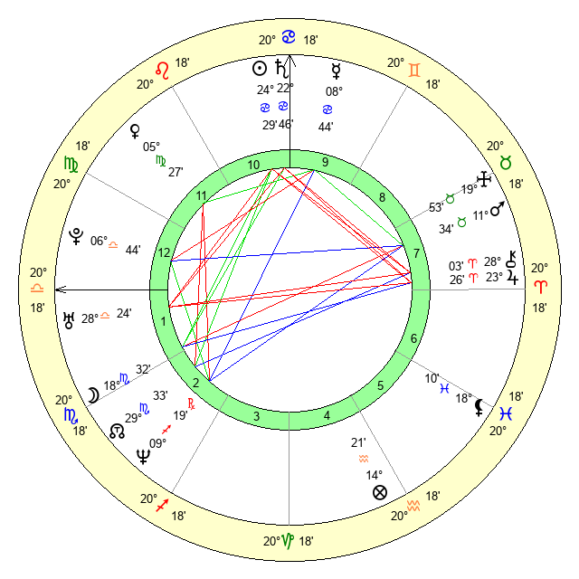 | Moon | 18 Scorpio 33 | 21 Aries 6 | 11 Virgo 1 |
