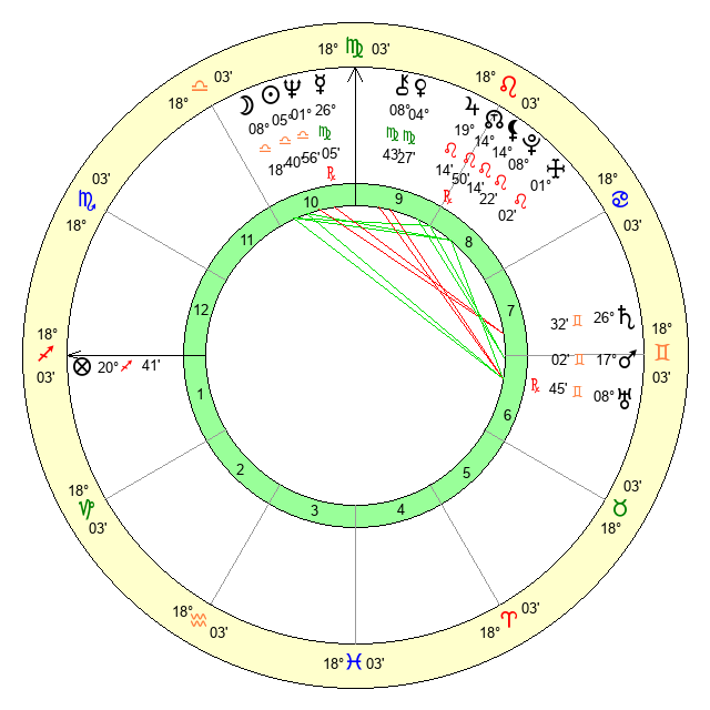 | Venus | 4 Virgo 27 | 12 Virgo 29 | 14 Scorpio 9 |