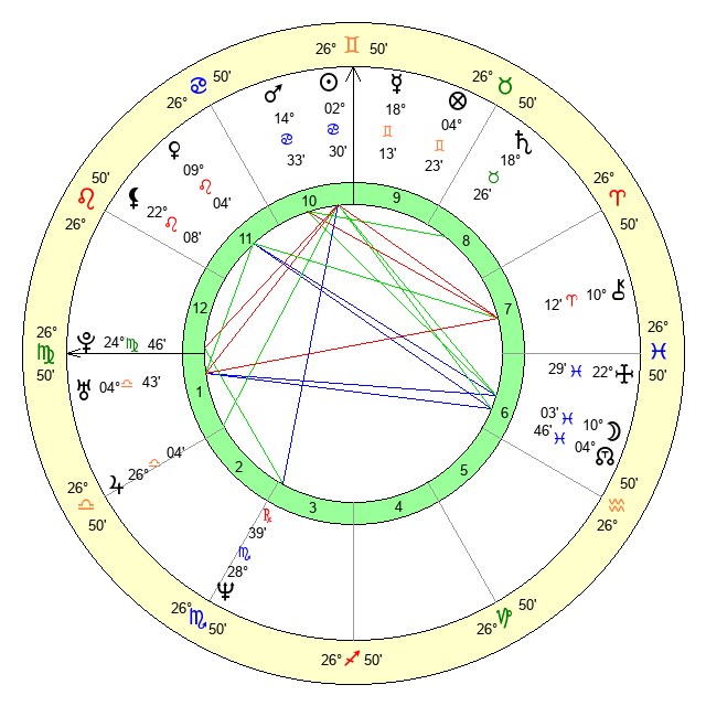 | Moon | 10 Pisces 0 | 19 Gemini 45 | 13 Pisces 46 |