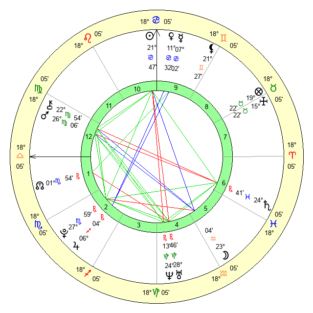 | Mercury | 7 Cancer 3 | 15 Leo 5 | 6 Virgo 31 |