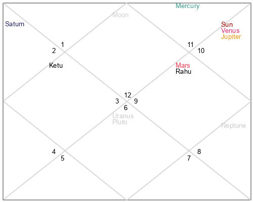 | Ketu | 15 Cancer 18 | 29 Virgo 33 | 12 Cancer 32 |