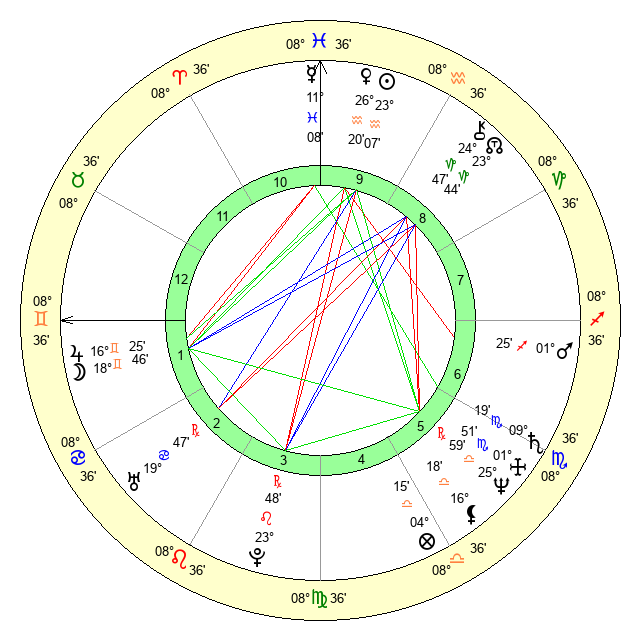 | Moon | 18 Gemini 49 | 21 Leo 24 | 11 Capricorn 45 |
