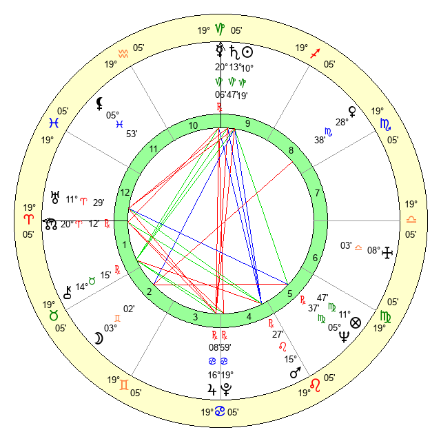 | Neptune | 5 Virgo 38 | 27 Pisces 18 | 3 Virgo 23 |