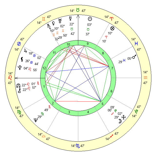 | Pluto | 4 Leo 56 | 3 Aquarius 47 | 6 Leo 24 |
