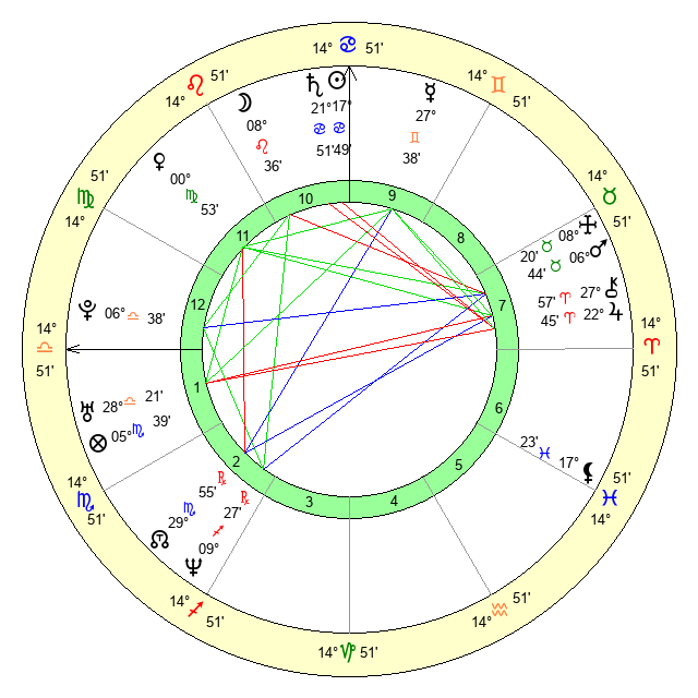 | Moon | 8 Leo 37 | 16 Capricorn 59 | 2 Gemini 31 |