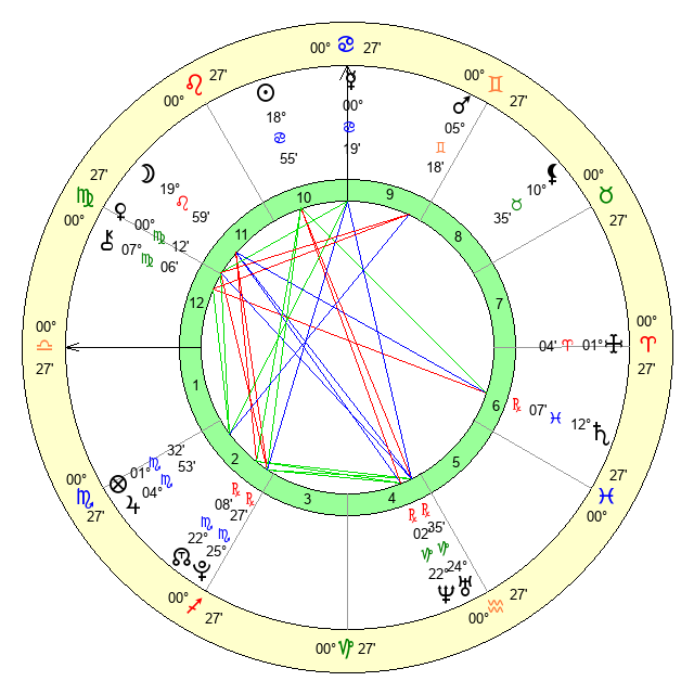 | Sun | 18 Cancer 55 | 19 Cancer 24 | 18 Leo 33 |