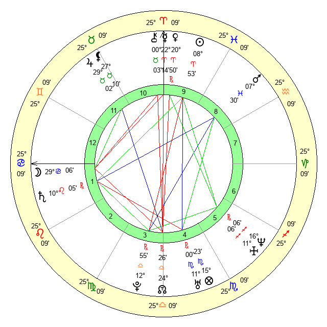 | Moon | 28 Cancer 57 | 12 Aries 48 | 10 Taurus 14 |