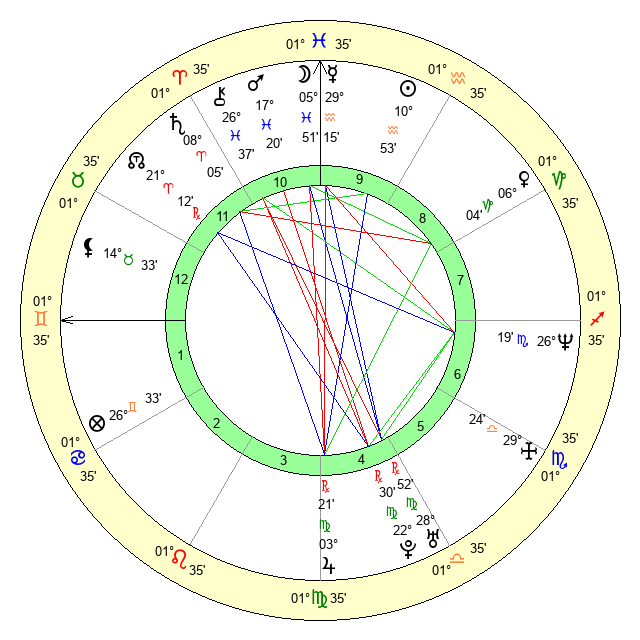 | Venus | 6 Capricorn 5 | 27 Pisces 13 | 16 Pisces 12 |