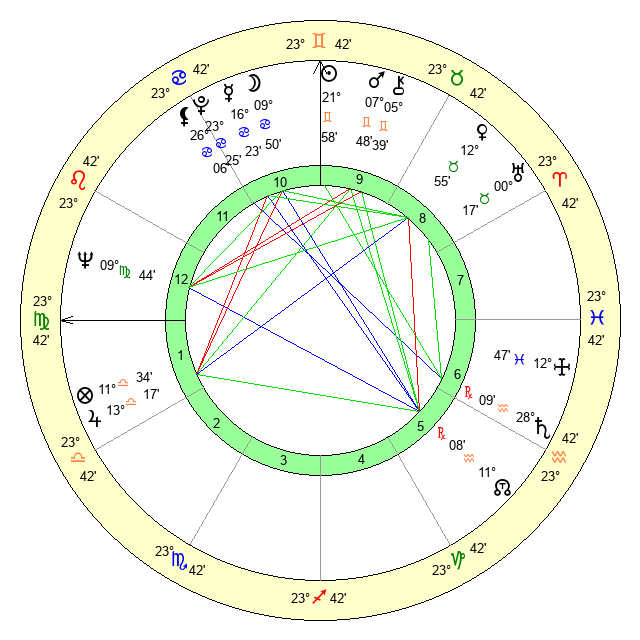 | Sun | 21 Gemini 58 | 22 Gemini 56 | 19 Virgo 13 |