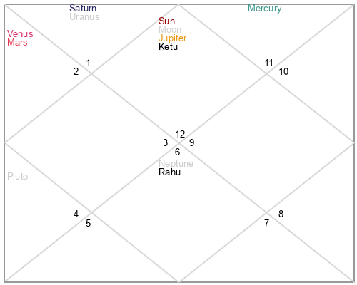 Note: This birth chart is calculated using the date and place of birth, with the time set to noon (12:00 PM) local time. While this provides accurate planetary positions for most celestial bodies, the Ascendant (Rising Sign) and house cusps are not calculated since they require precise birth time. For a complete astrological analysis including houses and rising sign, please provide the exact birth time.