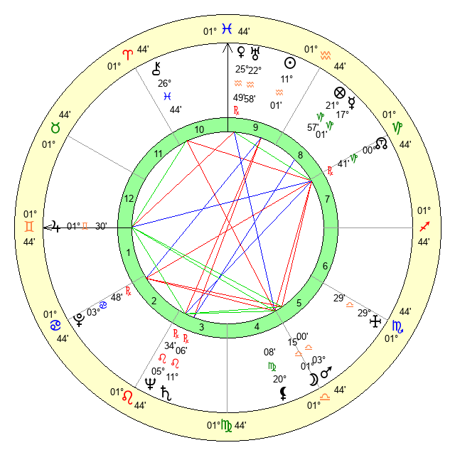 | Venus | 25 Aquarius 50 | 27 Pisces 13 | 12 Aries 44 |
