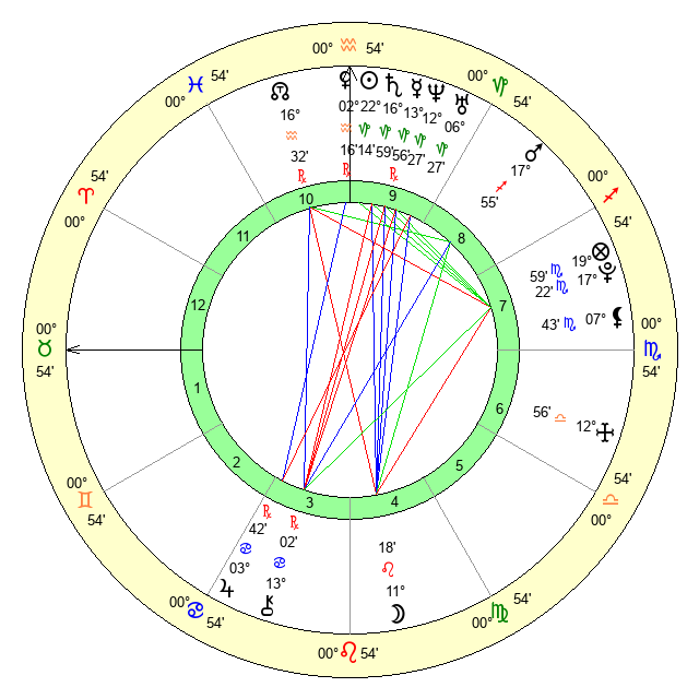 | Moon | 11 Leo 15 | 7 Cancer 18 | 15 Scorpio 57 |